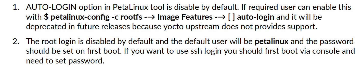 在最新版的UG1144 (v2022.2) 文档中,可以发现当前的 petalinux 登录的用户名为 petalinux,密码在第一次 boot 的时候设置。