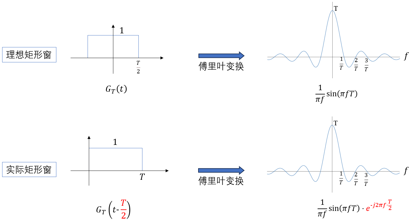 真实系统中没有负时间,需要将矩形窗右移到正时间轴: